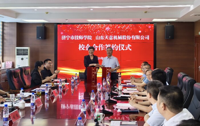 劉洪彬董事長(zhǎng)發(fā)表了講話,他表示,企業(yè)的競(jìng)爭(zhēng),本質(zhì)是人才的競(jìng)爭(zhēng)。在企業(yè)的發(fā)展中,技能型人才始終是我們最寶貴的財(cái)富。通過加強(qiáng)產(chǎn)教融合建設(shè),濟(jì)寧市技工院校為我們公司培養(yǎng)了許多專業(yè)過硬的技能型人才。退役軍人們,在部隊(duì)中鍛造的紀(jì)律意識(shí)、抗壓能力和團(tuán)隊(duì)協(xié)作精神,正是現(xiàn)代企業(yè)所急需的人才。許多退役軍人同事已在設(shè)備調(diào)試、售后服務(wù)、生產(chǎn)管理等關(guān)鍵崗位上,成長(zhǎng)為企業(yè)的中堅(jiān)力量。作為扎根濟(jì)寧20年的本土企業(yè),山東天意機(jī)械股份有限公司成立于1998年,是以裝配式建筑裝備研發(fā)、制造為主導(dǎo),同時(shí)涵蓋鋁合金型材生產(chǎn)、機(jī)器人制造、智慧物流、新能源等領(lǐng)域的國(guó)際化、多元化、創(chuàng)新型企業(yè)集團(tuán)。歡迎廣大學(xué)子和退役軍人到天意,共創(chuàng)美好未來(lái)! 隨后,劉洪彬董事長(zhǎng)與濟(jì)寧市技師學(xué)院進(jìn)行了校企合作簽約儀式。